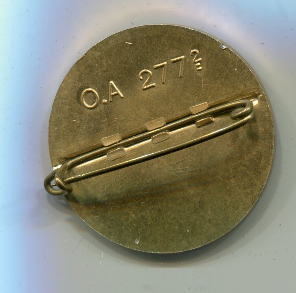 Badge avec épinglette, aluminium doré, œuvre du graveur F. Cogné, en centre profil tête nue haut relief légende circulaire : " PHILIPPE PETAIN / MARECHAL de FRANCE / CHEF de L' ETAT - circulaire 30 mm - au dos homologation censure " O.A. 277 2 "