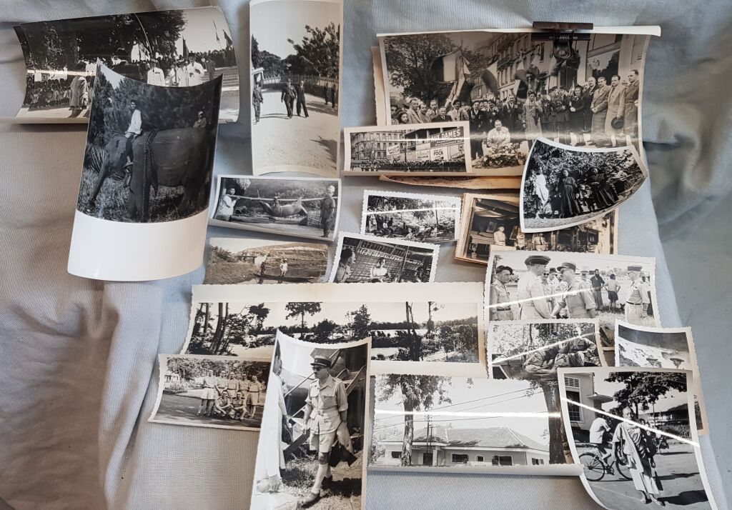 90 ( quatre vingt dix ) bromures tous formats divers amateur ou officiels Armée, de 6 x 9 cm à 18 x 24 cm - Scènes locales villages des hauts plateaux, prises d' armes, locaux extérieurs et intérieurs, hommes, officiers, paysages, éléphants ....