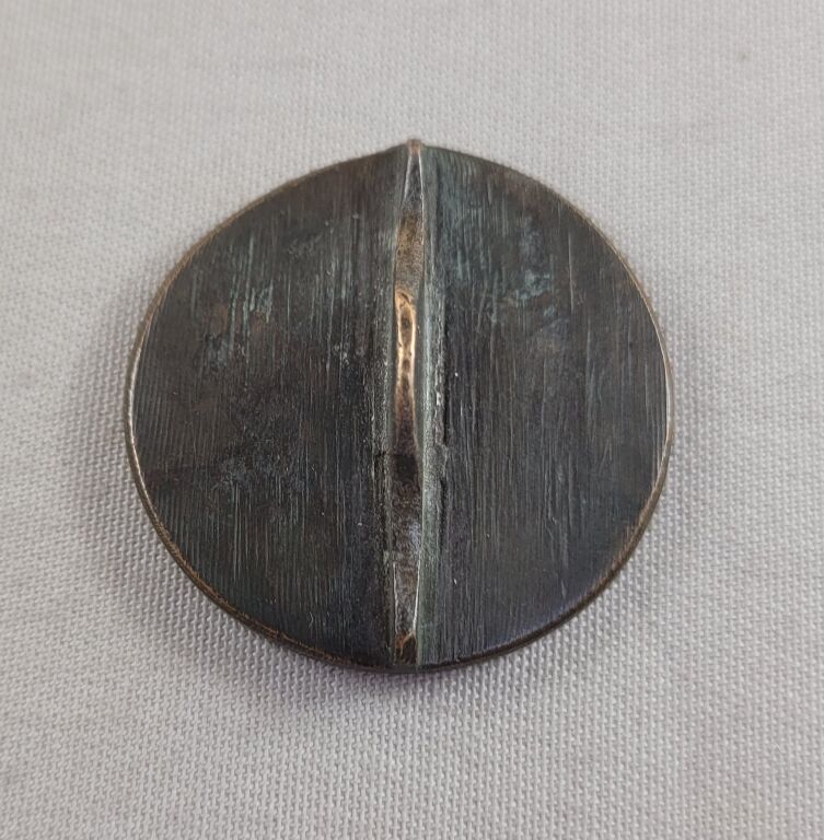 En bronze, ronde 39 mm à légende circulaire en latin gravée en creux en négatif. En centre tête d' évêque avec mitre, profil à gauche.- au dos arête pour préhension. - 37,31 gr