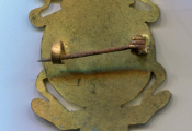 Email grand feu laiton ajouré avec épingle pour port au veston 37 x 28mm.