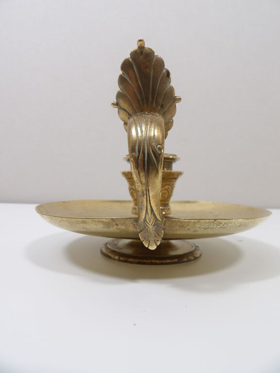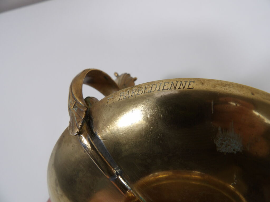 Bougeoir à main en métal doré signé de la maison Barbedienne.