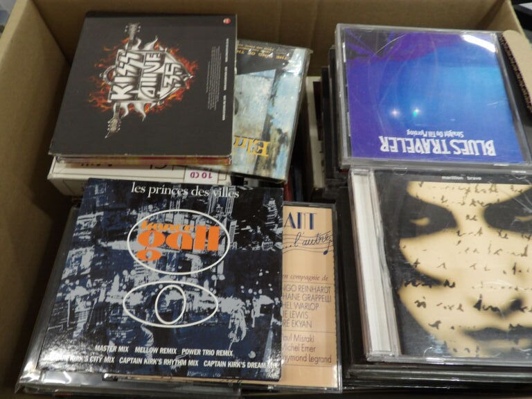 Carton de +50 CDS - d'occasion - vendus en l'état, divers chanteurs.