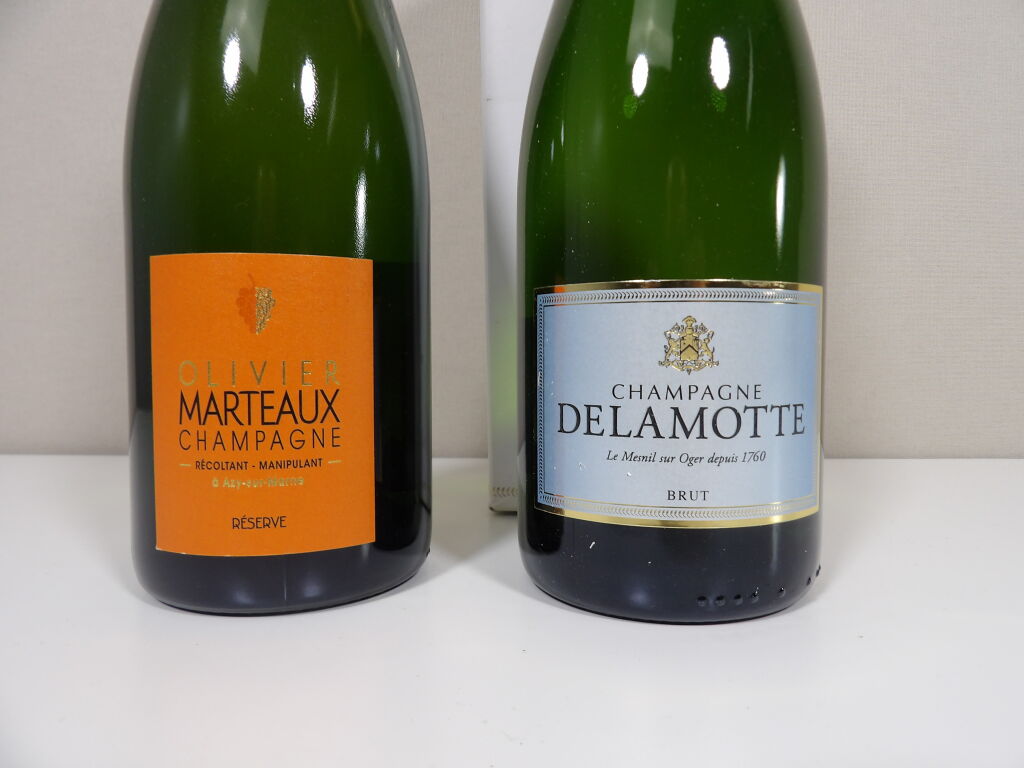 Champagne : 2 bouteilles dont Champagne Delamotte Brut et Olivier Marteaux Réserve.