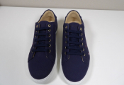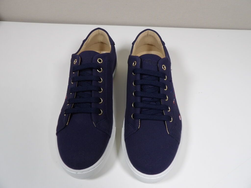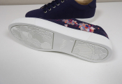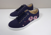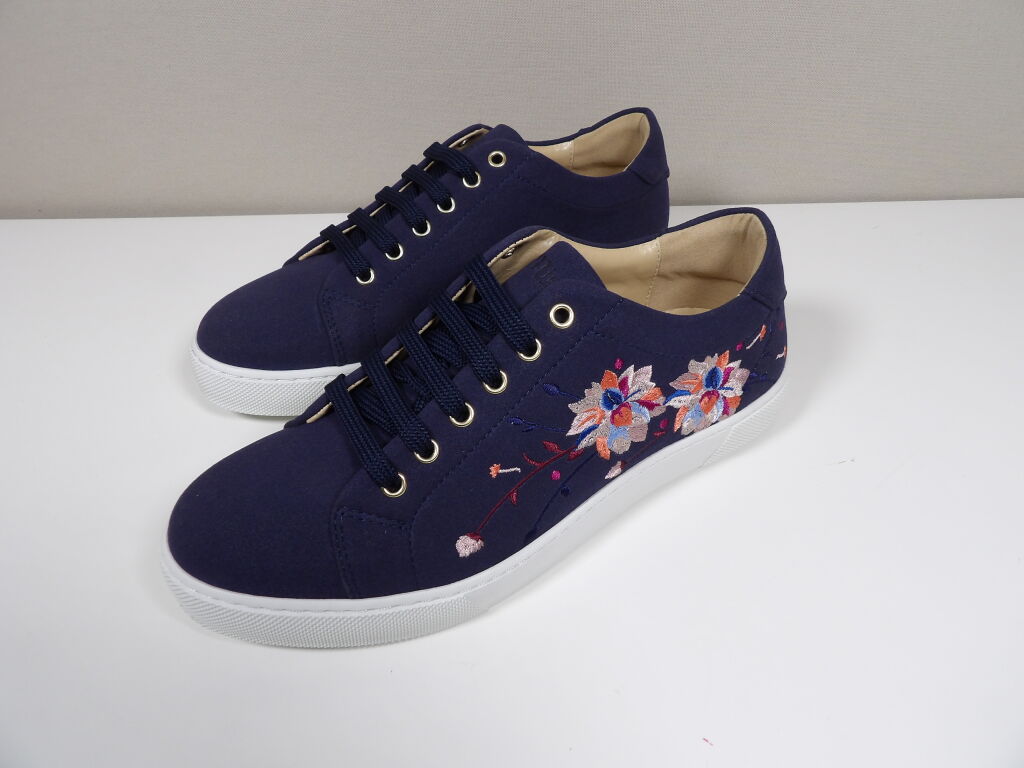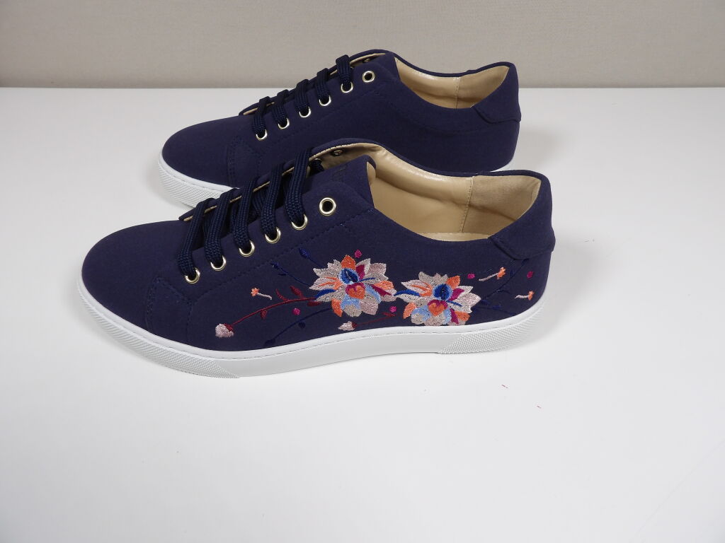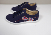 - Sneakers basses en toile et cuir bleu marine et broderie florale