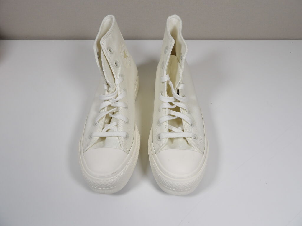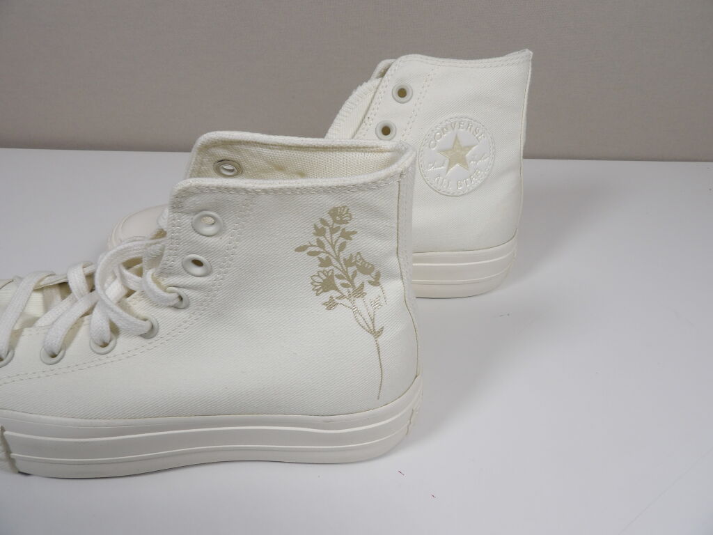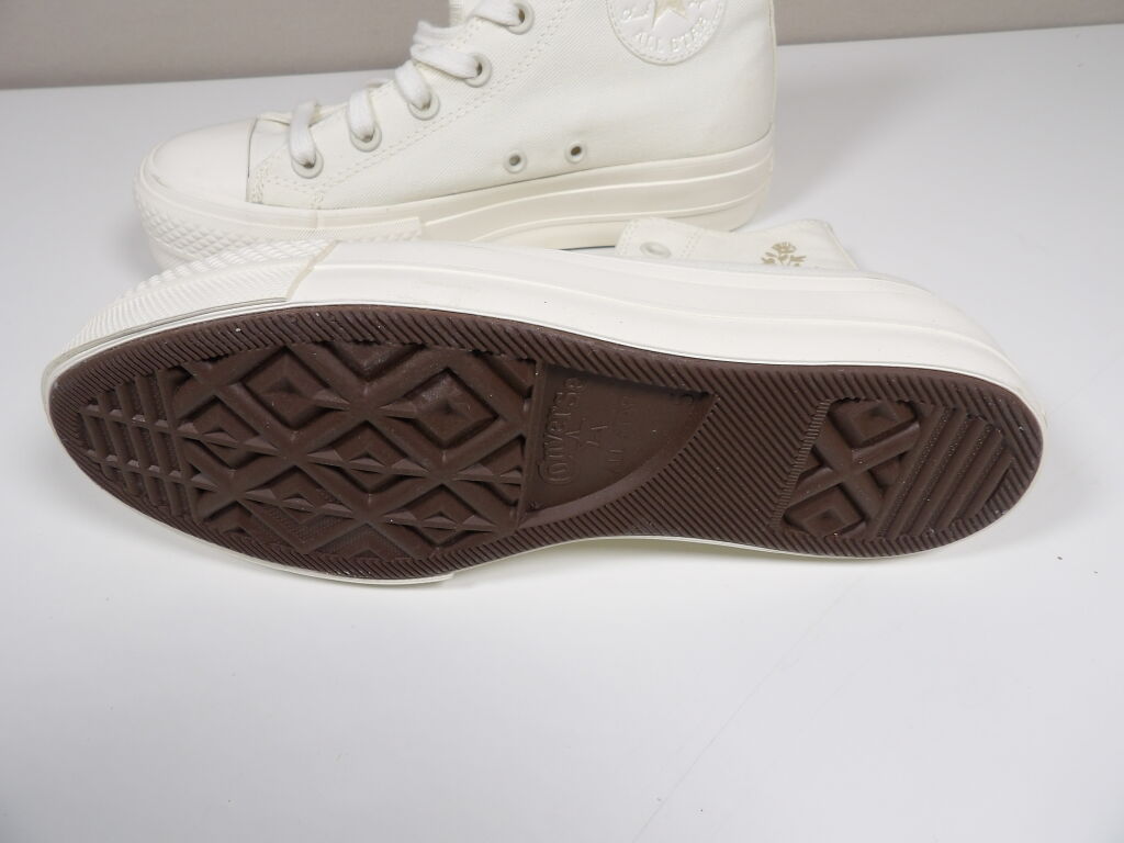 - Baskets Converse montantes et compensées coloris écru avec détails floral doré (Taille 37.5)