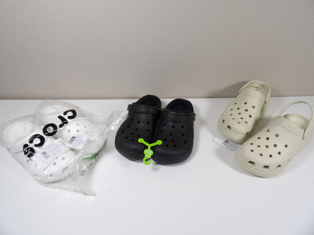 CROCS - Lot de x3 paires en 38-39 - NEUVES : Noir avec fausse fourrure intérieure, beige à plateforme et blanche CLASSIC.