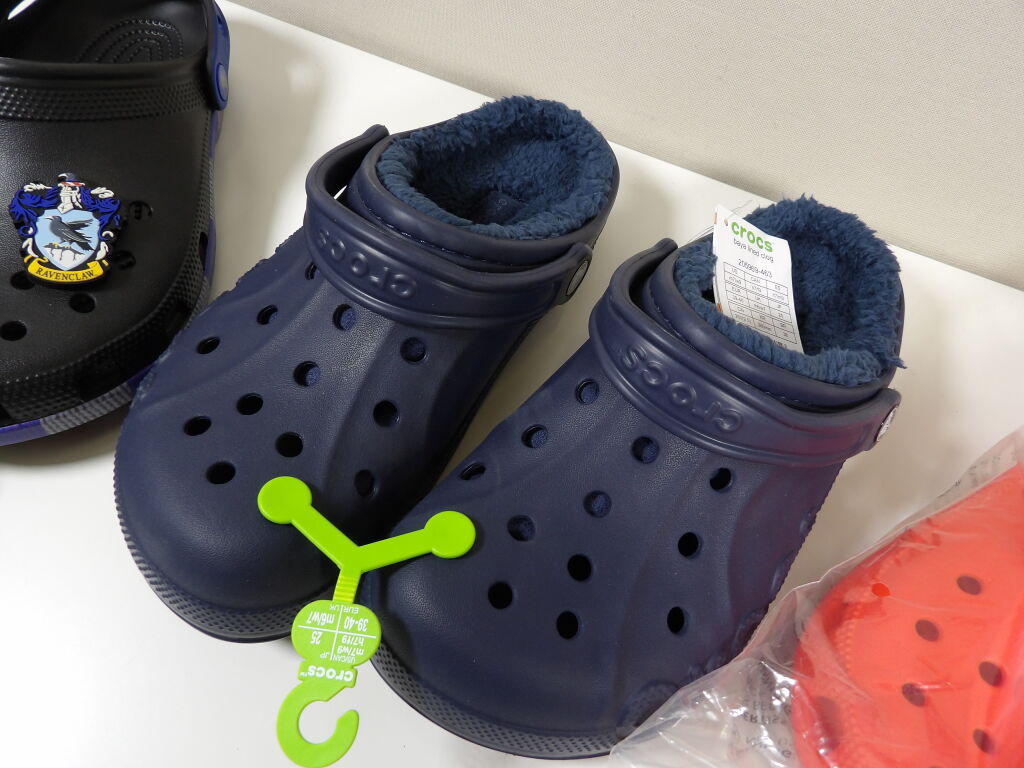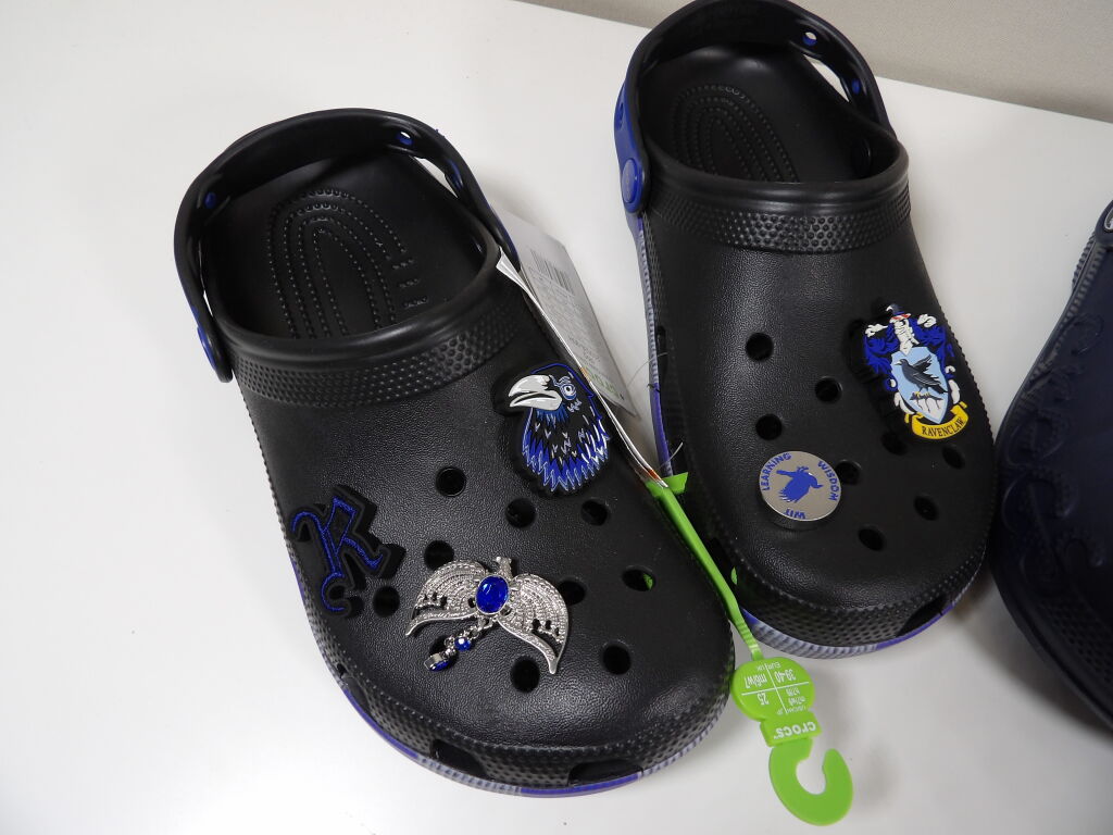 CROCS - Lot de x3 paires en 39-40 - NEUVES : Rouges flash, bleu foncé avec fausse fourrure intérieur et noir avec détails RAVENCLAW et charms.
