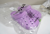CROCS - Lot de x3 paires en 39-40 - NEUVES : Tongs roses pales, BAYA en violet et getaway plateforme avec passage gros orteil en beige.
