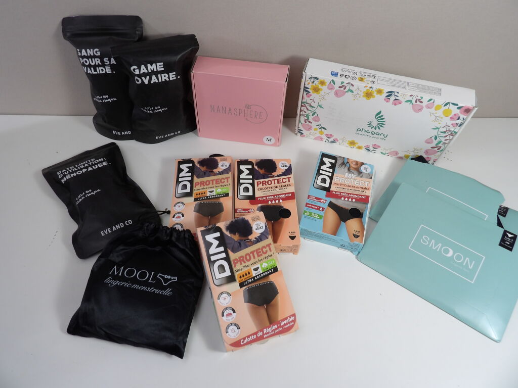 CULOTTES MENSTRUELLES et autres NEUF : Lot de 12. Différentes marques, modèles et tailles.