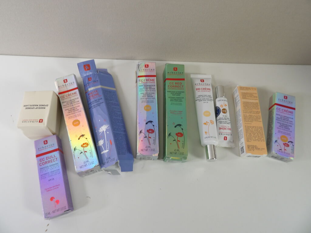 ERBORIAN Lot de x10 articles neufs et occasion (et certains emballages abimés) : Eponge maquillage, CC CREME, Matte crème, BB crème, CC DULL CORRECT, Super BB CONCEALER ...