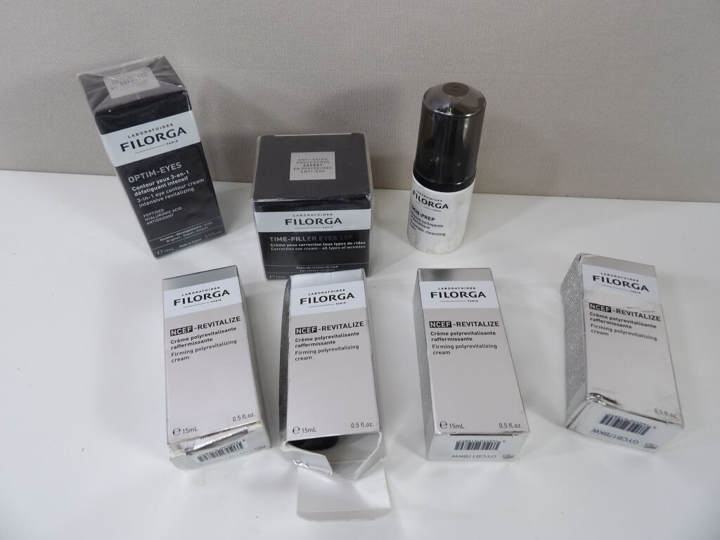 FILORGA Laboratoires Lot de x7 articles neufs et occasion : x1 Optim-eyes contour yeux 15ML, x4 NCEF - REVITALIZE Crème polyrevitalisante raffermissante 15ML, x1 Mousse nettoyante enzymatique 30ML, x1 Time-filler eyes 5XP Crème yeux correction tous types de rides 15ML.