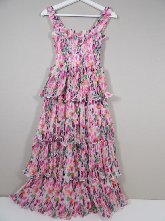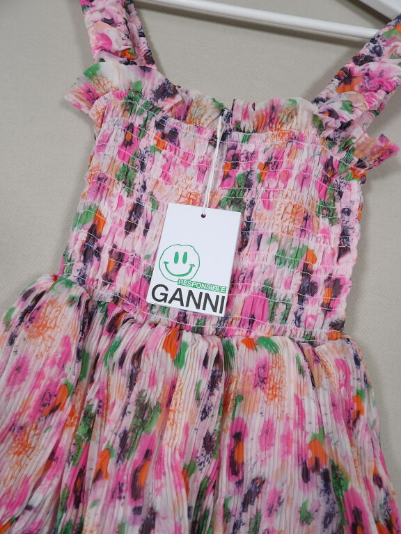 GANNI - Robe à bretelles et volants imprimé floral - Neuf avec étiquette - Taille 34