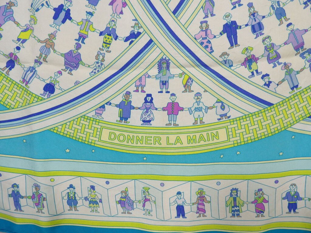 HERMES - Carré en soie modèle Donner la Main - Occasion bon état quelques tâches - prévoir nettoyage