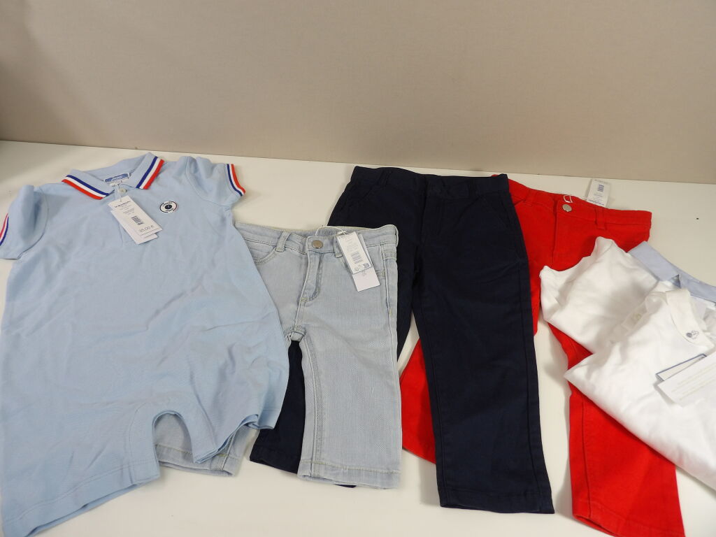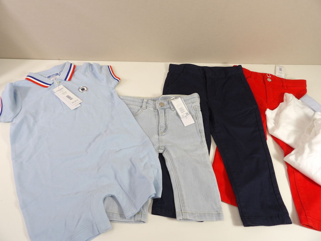 JACADI Paris Lot de x6 articles NEUFS avec étiquettes : x2 Pantalons 24M, x1 Combi short polo 36M, x1 Jeans 6M, et x2 bodies manches longues en 6M + 12M.