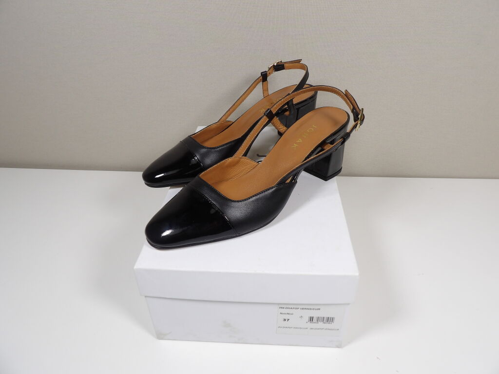 JONAK - Escarpins bi-matière en cuir lisse et vernis noir - Taille 37 - Neuf avec boîte