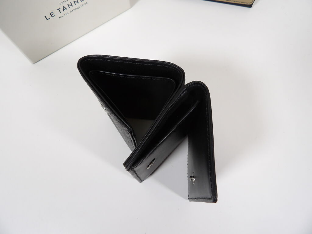 -LE TANNEUR Porte monnaie avec plusieurs rangements en cuir noir, dimensions environ 9,5 x 6,5 cm, avec sa boite.