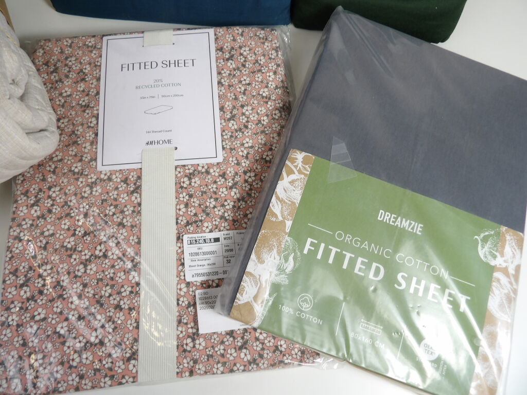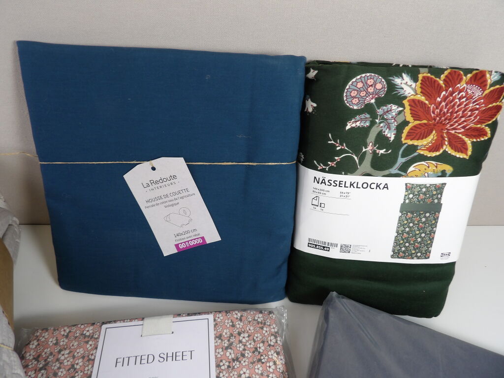 LINGE DE MAISON x5 articles neufs : Couvre lit beige 220x240CM, Une housse et oreiller 140x200 / 80x80cm Nasselklocka Ikea, x1 drap housse H&M Home fleuri 90x200cm, x1 drap Dreamzie et x1 Housse de couette 140x200 La Redoute.
