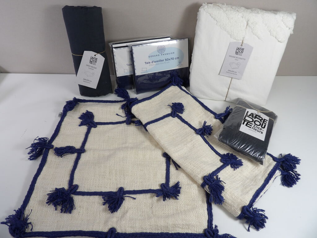 LINGE DE MAISON x7 articles : Housse de couette 200x200cm (finition avec boutons) et drap housse coton lavé 140x190cm LA REDOUTE, ainsi que x5 taies d'oreillers dont 2 de coussins ALINEA.