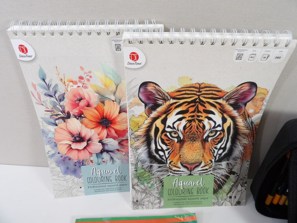Lot de cahiers de coloriage et trousse de feutres - neuf et occasion.