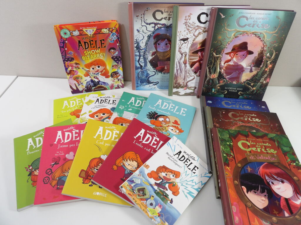 Lot de x16 bandes dessinées d'occasion pour ENFANT : x6 Les Carnets de Cerise, et x10 Mortelle Adèle.