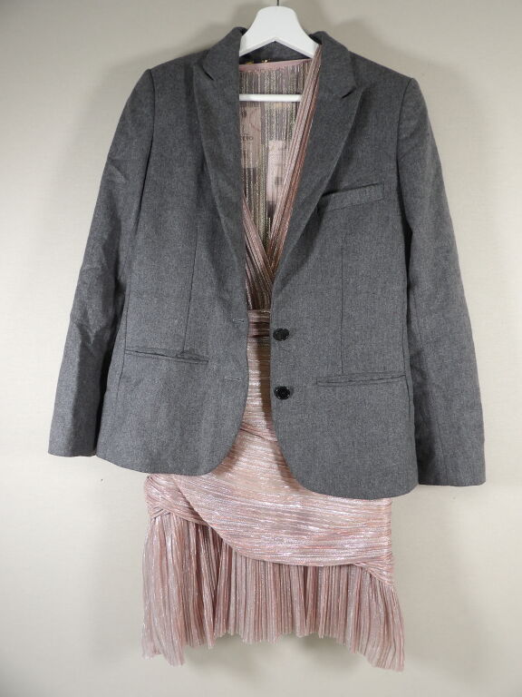 Lot de x2 articles de seconde main en taille M / 38 (d'occasion bon état) : Robe brillante MAJE et Blazer gris SOEUR.