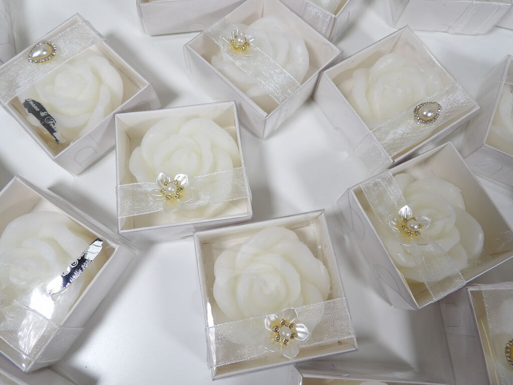 Lot de x40 bougies - motif rose blanche - idéal pour un mariage ou autres évènements.