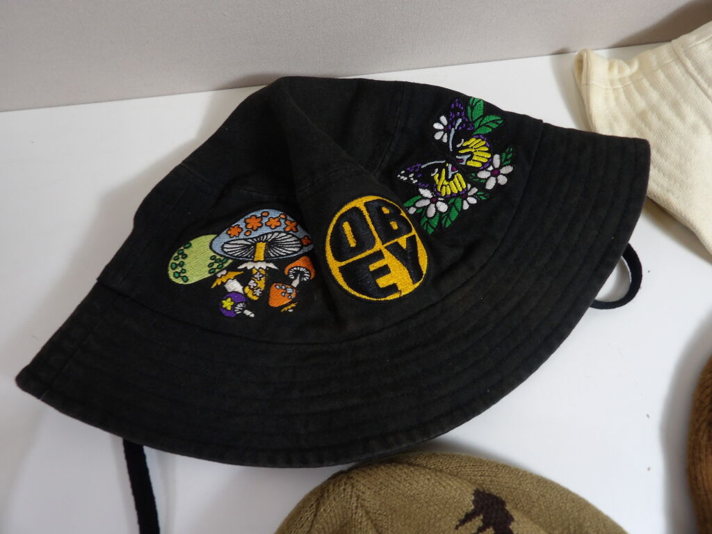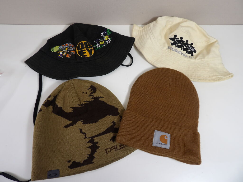 Lot STREETWEAR D'occasion de x4 bonnets et bob : STUSSY, OBEY, CARHARTT et PALACE.