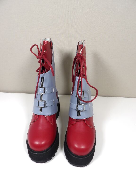 - YRU SHoes - Boots montantes lacées en simili cuir rouge et gris - Taille 9 (41?) - Neuf avec boîte abîmée