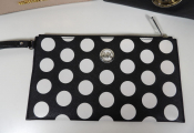 -Pochette à pois noir et blanc, 25x14CM, fermeture zippée.