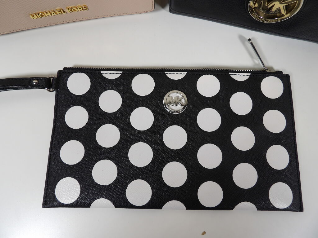 MICHAEL KORS - Lot de x2 porte monnaires et une pochette d'occasion (état satisfaisant à correct).