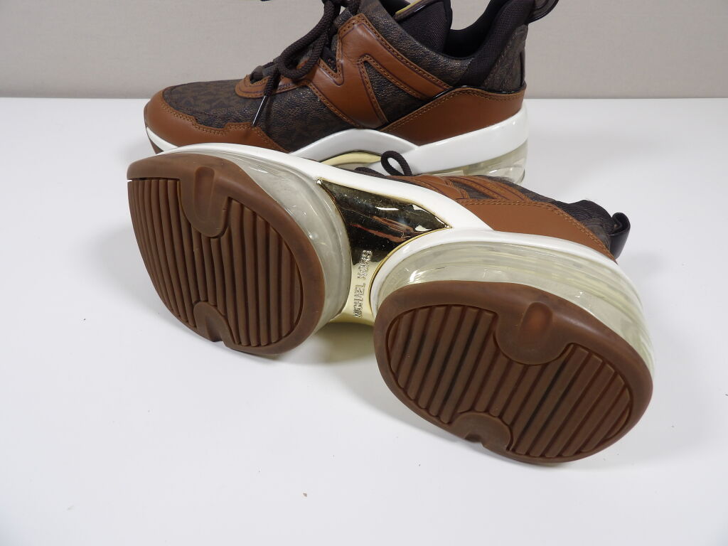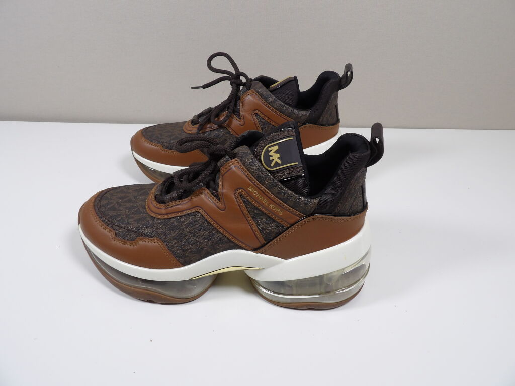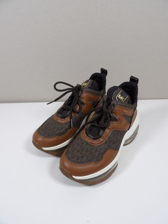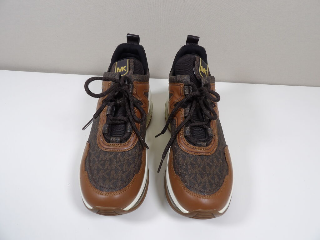 MICHAEL KORS - Sneakers en toile monogramme et cuir camel /marron - Taille: 8.5 (38.5) - Ocassion en tèrs bon état (pas ou peu portées)