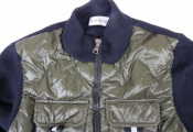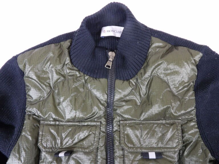 50% de laine - coloris kaki et bleu marine, logo Moncler sur la manche.