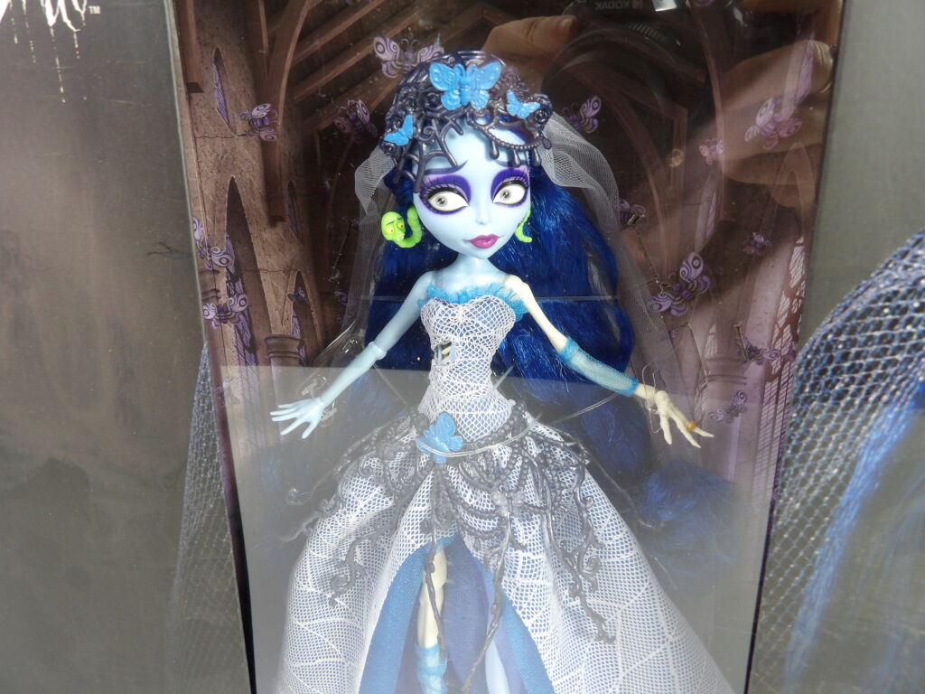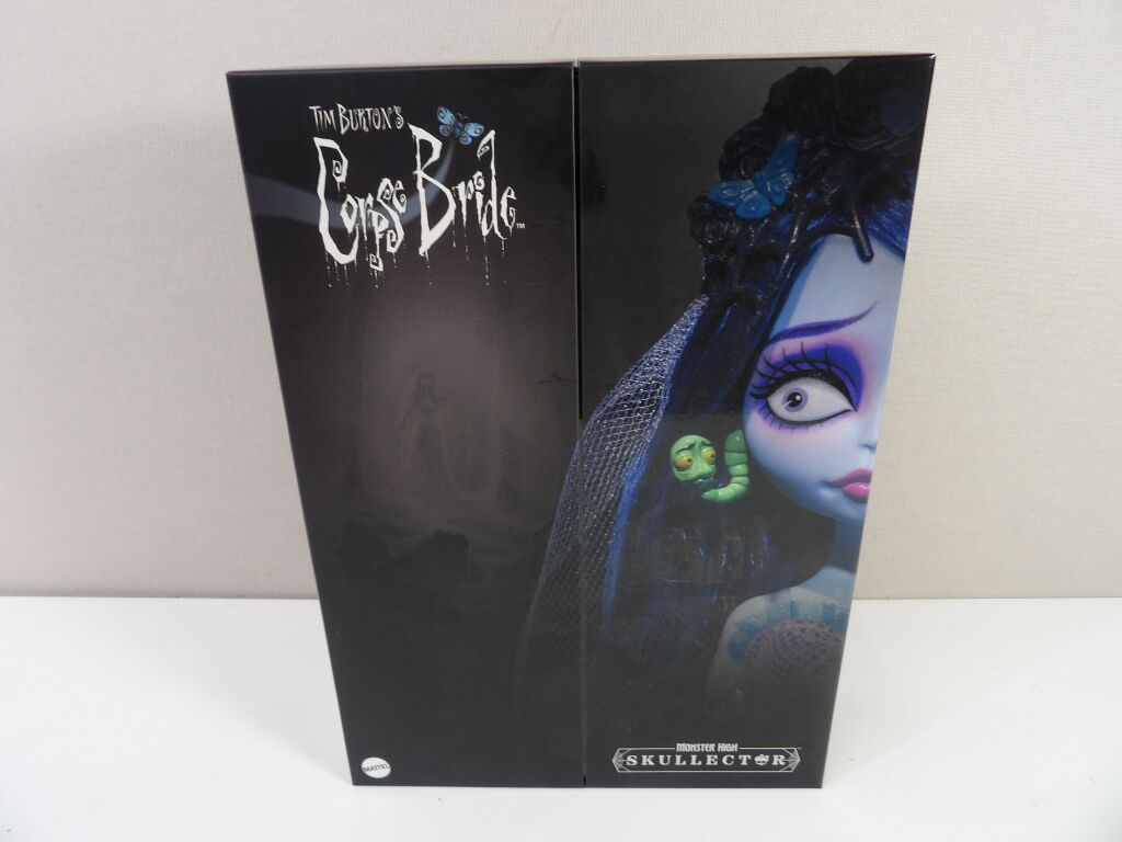 MONSTER HIGH : Coffret Skullector Emily Les Noces funèbres, poupée à Collectionner vêtue d'Une Robe de mariée Gothique à Motif Toile d'araignée, avec des Accessoires et Un Socle pour poupée, JDR67. Tim Burton