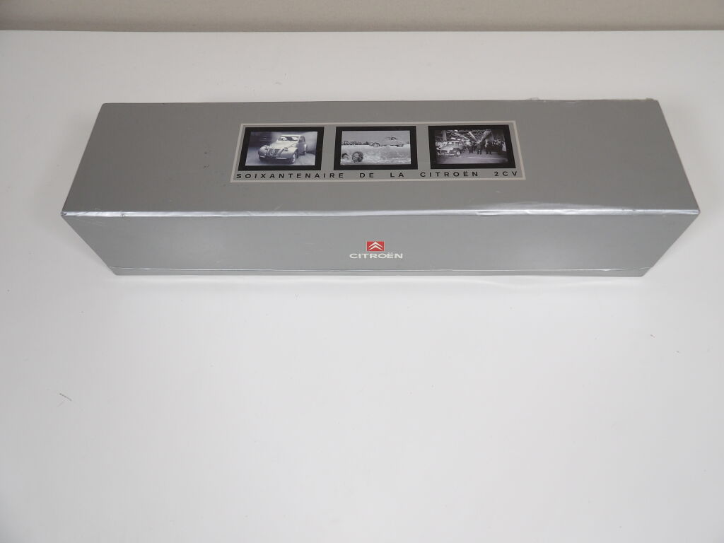 Norev coffret soixantenaire de la 2 cv Citroën édition limitée à 2900 exemplaires. trces sur le coffret en carton et ruban adhésif.