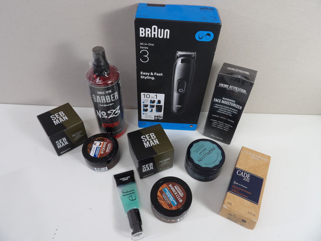 POUR HOMME : Lot pour le rasage : des soins et BRAUN ALL IN ONE SERIES 3 Tondeuse neuve.