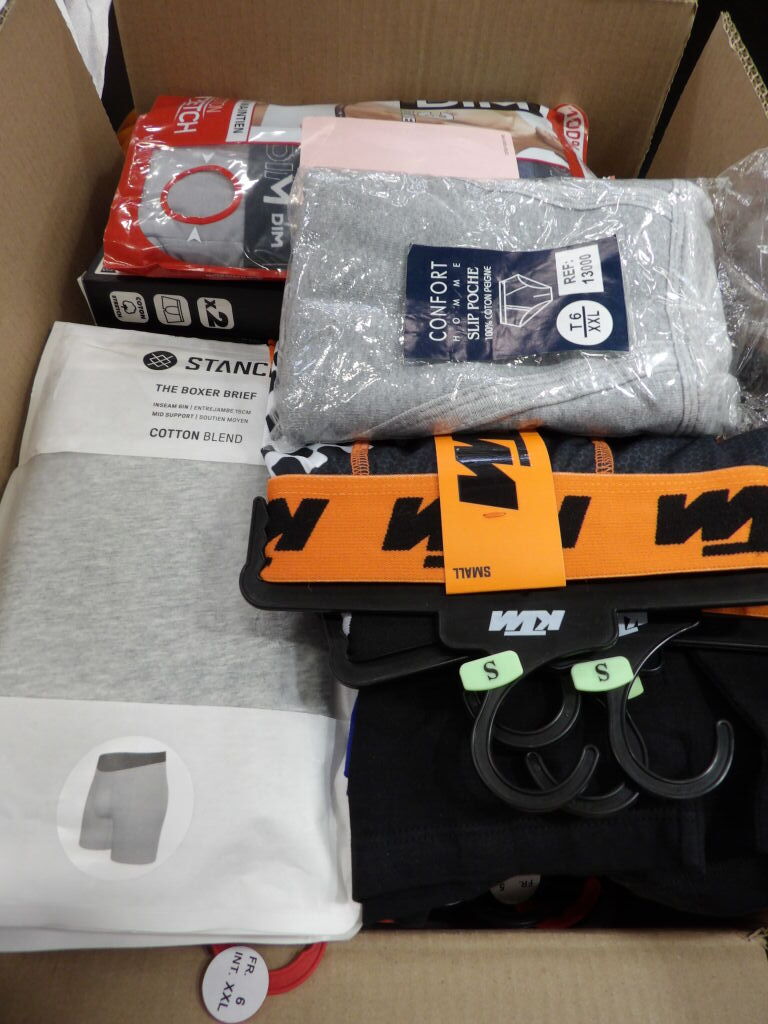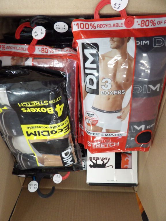 POUR HOMME NEUF : Lot de x35 PACKS et autres de CULOTTES / CALECONS - Principalement DIM, et d'autres marques présentes - voir photos. Différentes marques, modèles et tailles.