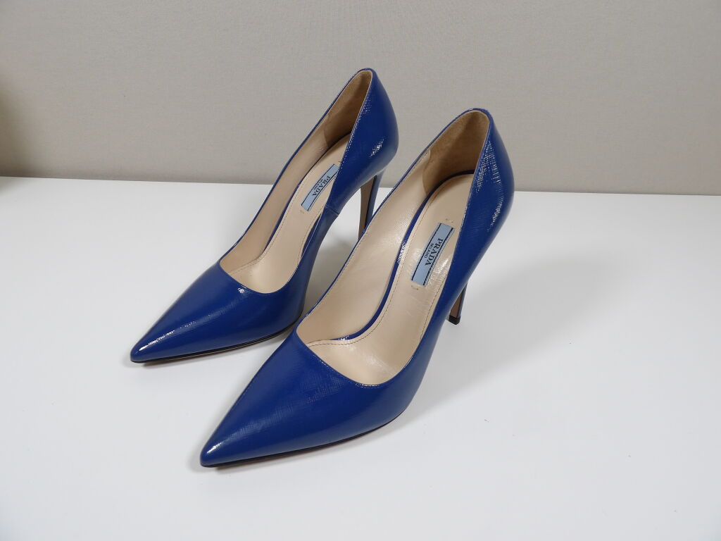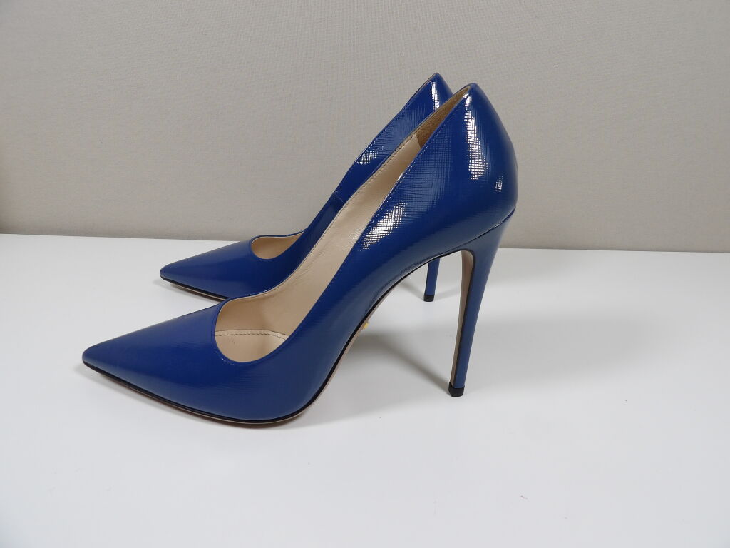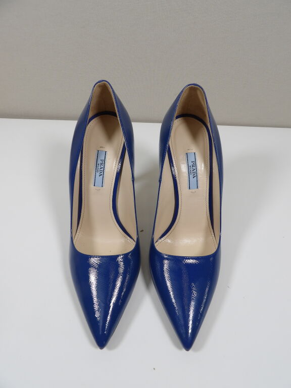 PRADA - Escarpins en cuir texturé / vernis coloris bleu - Taille 39.5 - Pas ou peu portés