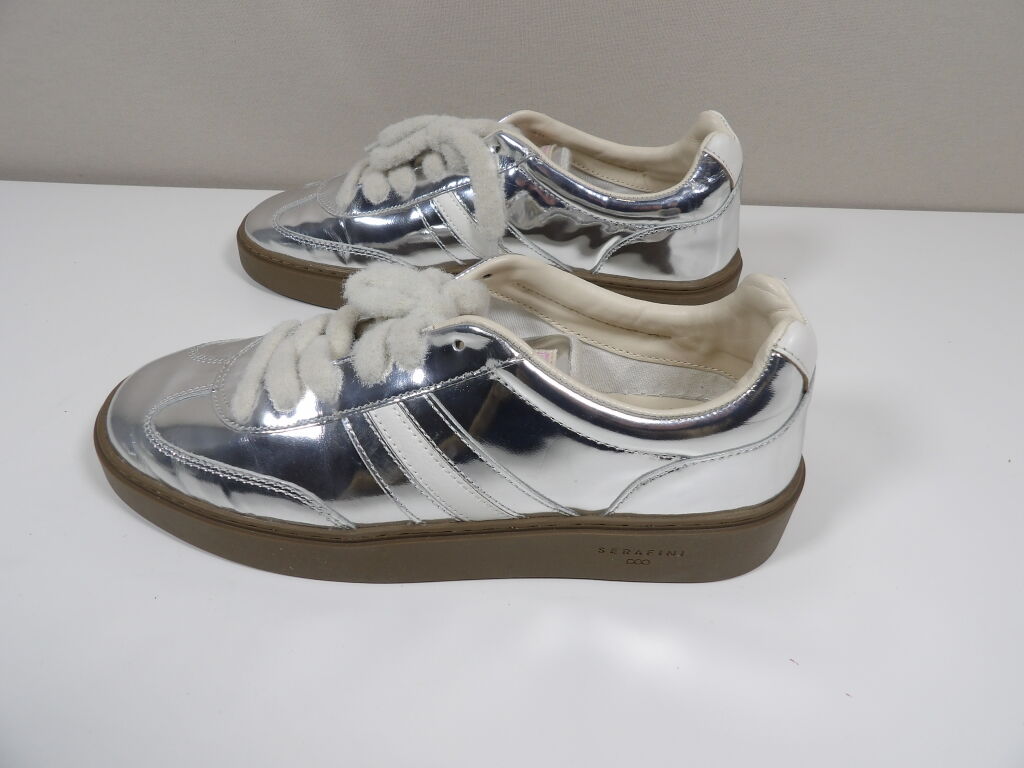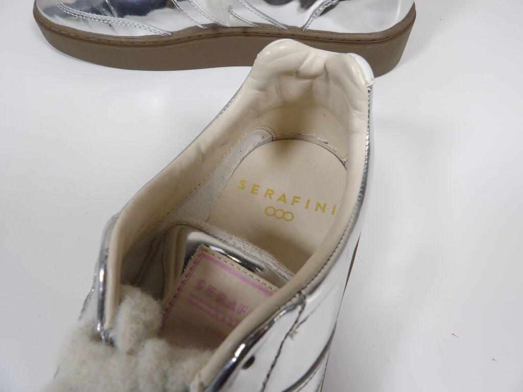 SERAFINI - Sneakers modèle court en cuir argent miroir - Taille 39 - Neuf sans boîte