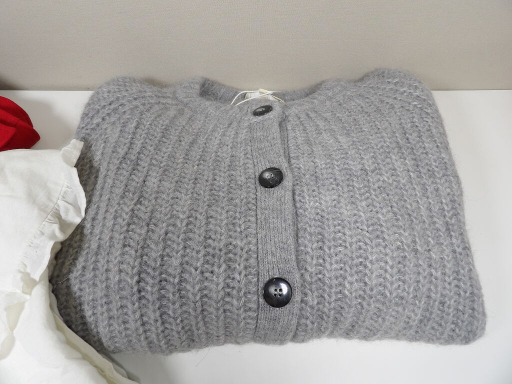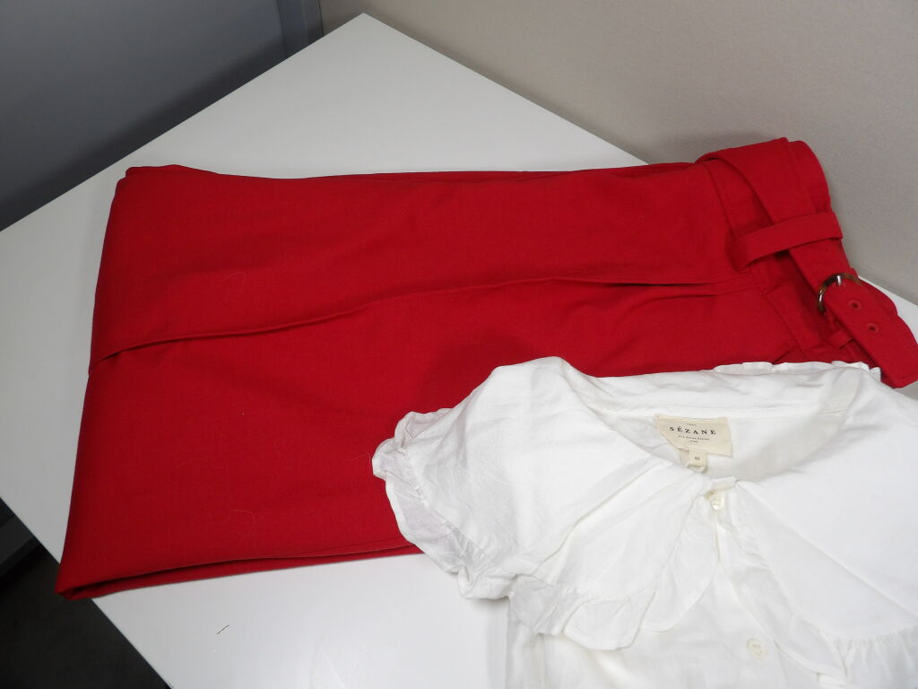 SEZANE : Ensemble T.46 / XXXL : pantalon rouge ALDO, avec chemise AMAEL et son gilet EMILE en gris chiné.