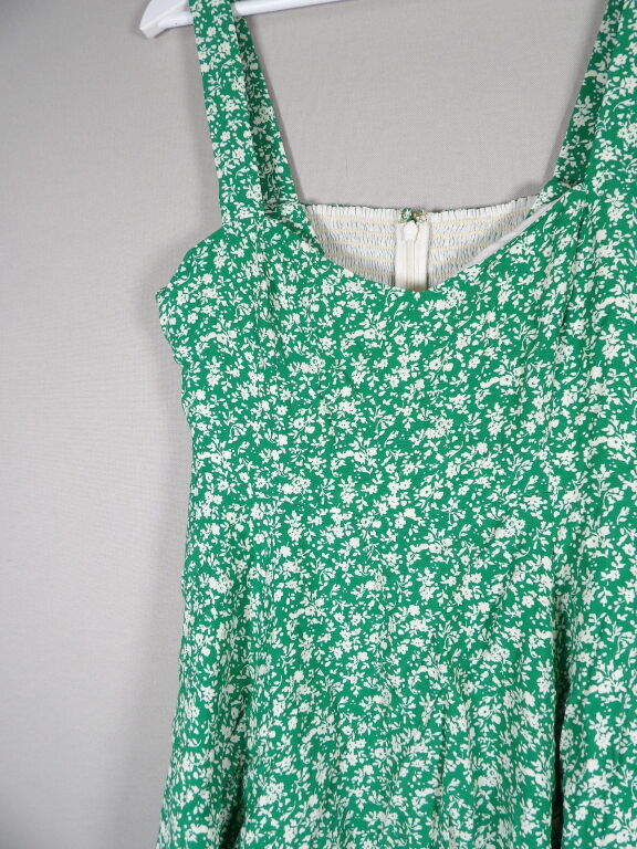 SEZANE Robe Salie Jardin vert en T38 avec son gilet pour la porter été comme hiver - Gilet Basile beige chiné en Taille M.