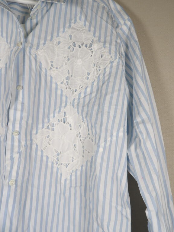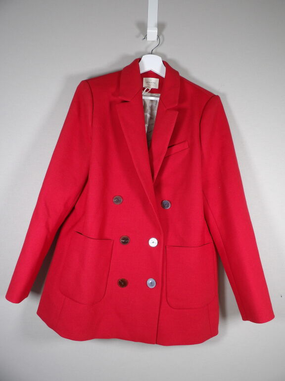 SEZANE T40 : Veste rouge MICHELE et x2 chemises : Blanches et bleues avec broderie MAXY et Blanc rouge ALLEN (Octobre Editions). On y inclut un totebag.
