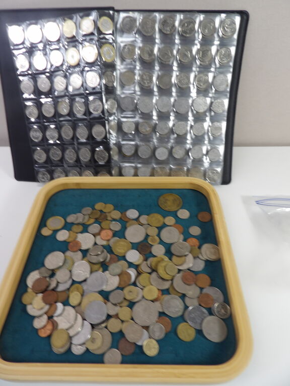 Une collection de monnaies françaises et du monde (environ 2 kg) une médaille Churchill
