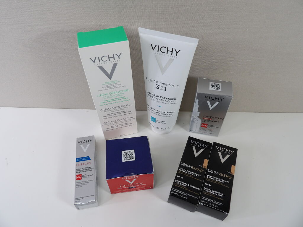 VICHY Lot de x7 articles : x1 Démaquillant intégral peau et yeux sensibles 300ML, x1 crème dépilatoire 150ML, x1 Liftactiv supreme H.A Epidermic Filler 30 ML, x2 Fond de teint correcteur 16H en teinte SAND 35, x1 Liftactiv soin yeux H.A. Anti rides raffermissant 15ML, et x1 Liftactiv crème sollagen specialist NUIT 50ML.