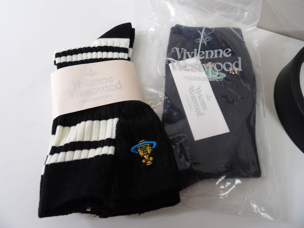 VIVIENNE WESTWOOD Lot de x3 articles : Une ceinture d'occasion bon état T90 et 2 paires de chaussettes neuves.