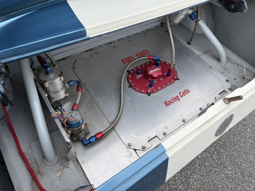 - Boite de vitesses manuelle 4 rapports taille droite Richmond Gear, boitier de direction Borgson, pompe de direction KRC Power Steering, durites aviation, réservoir compétition ATL 75 litres et échappements latéraux