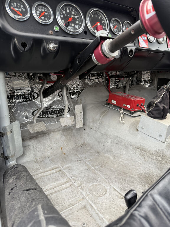 - Moteur V8 5.7L optimisé avec pistons JE, bielles et vilebrequin Eagle, carburateurs Holley 850 CFM, culasses en aluminium et pompe à eau Edelbrock, carter d'huile AVAID 12 litres, allumage MSD et gros radiateur de refroidissement en aluminium…