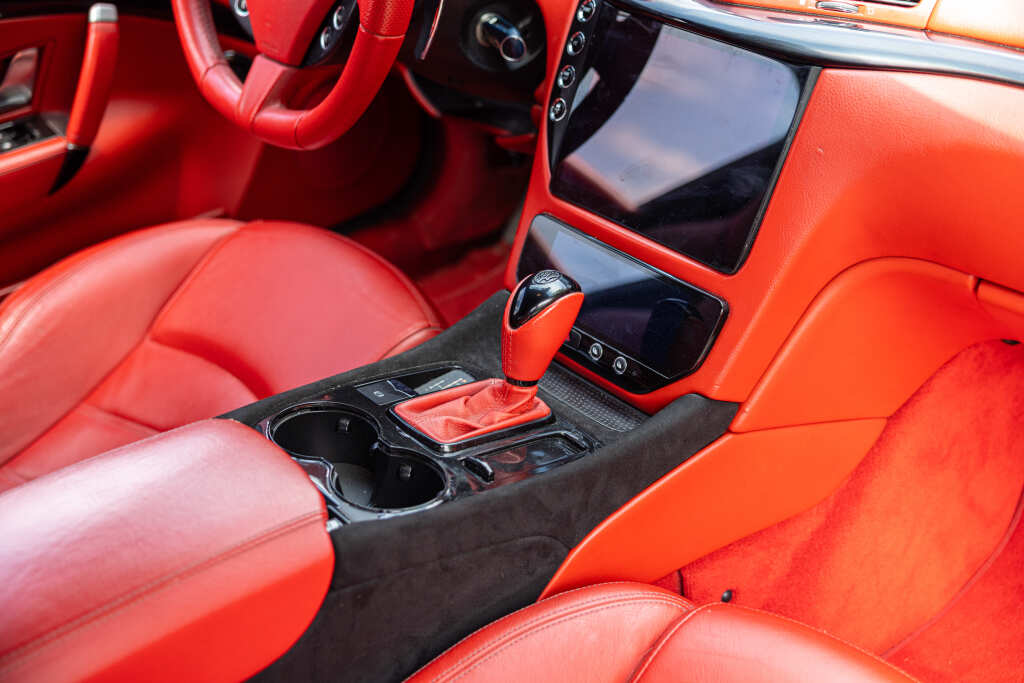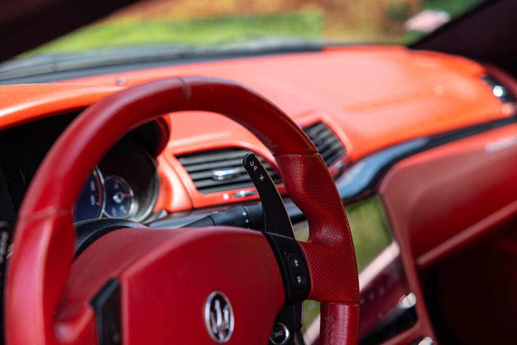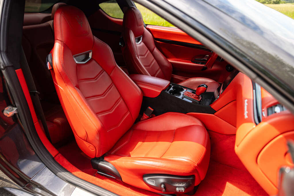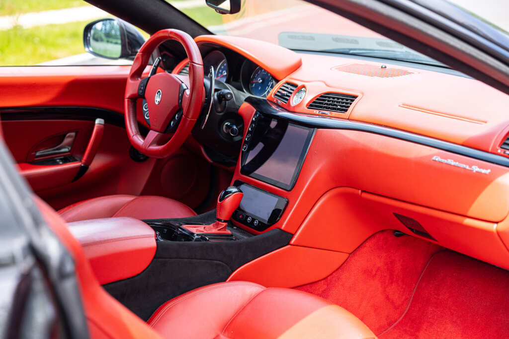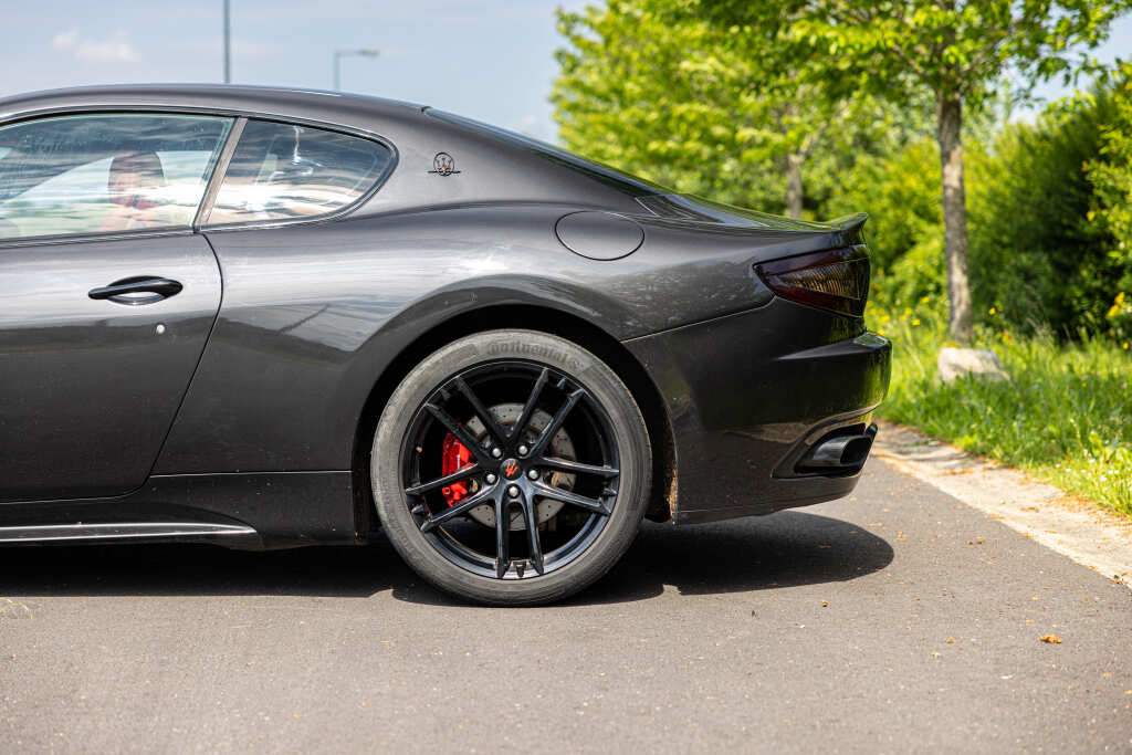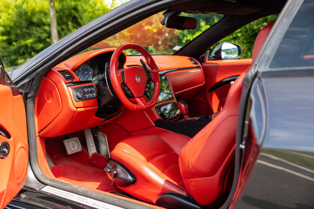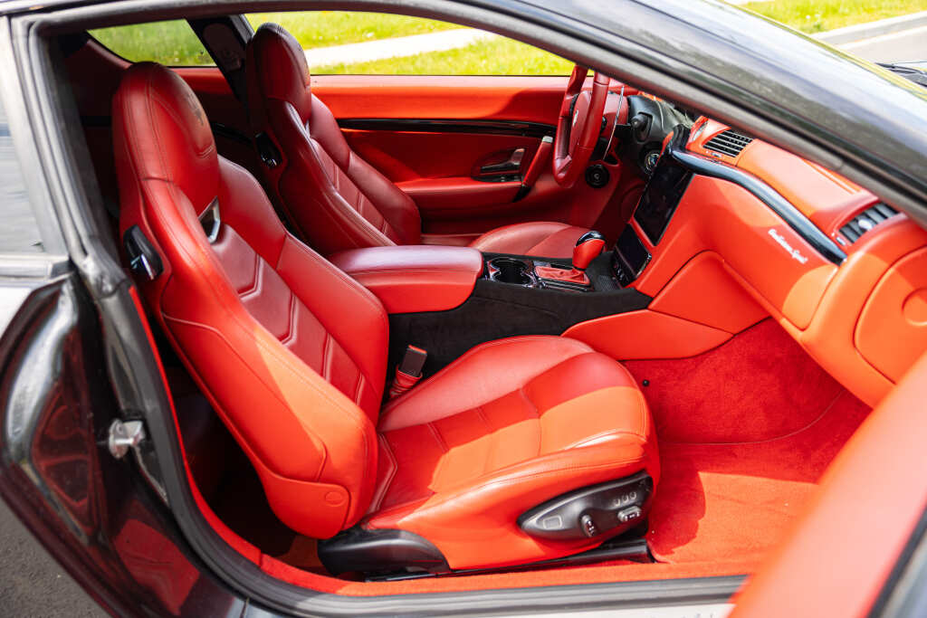 - Teinte Grigio Granito, jantes 20 pouces noires, feux fumés, intérieur tout cuir rouge