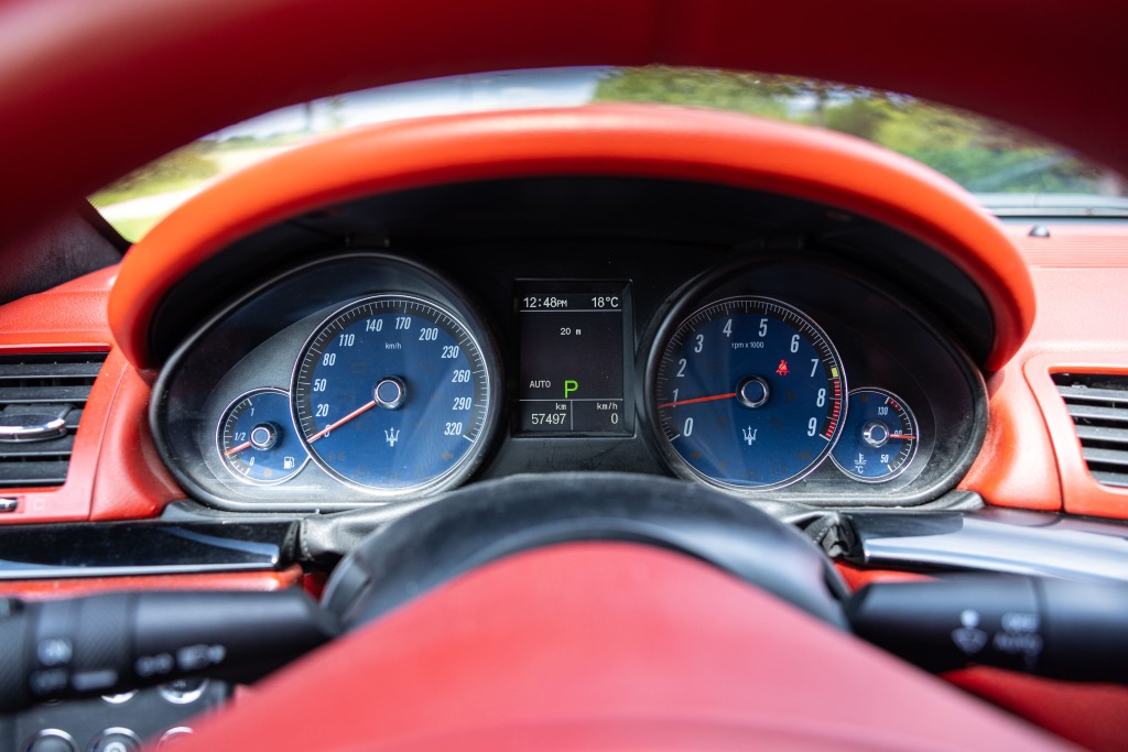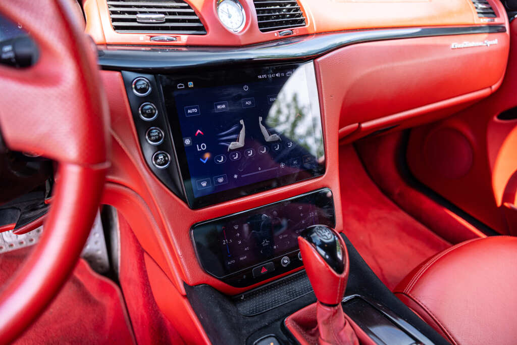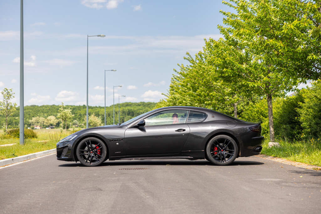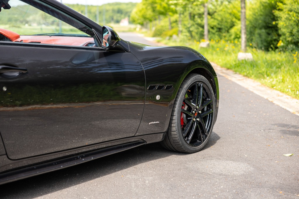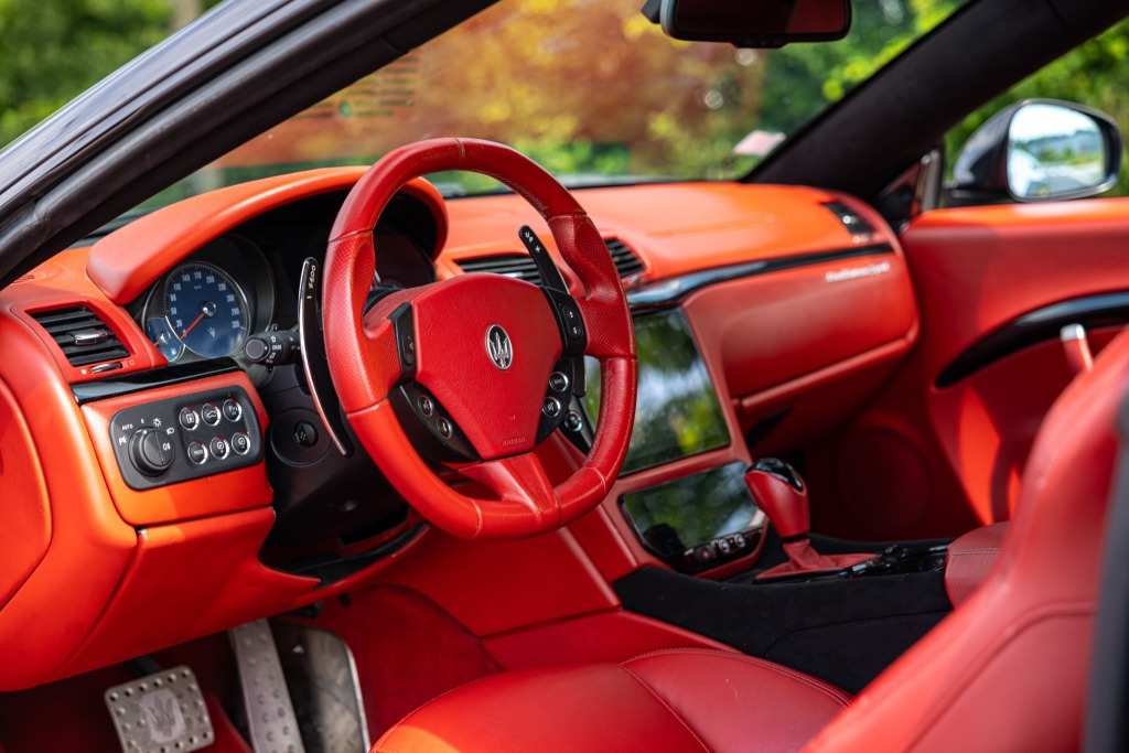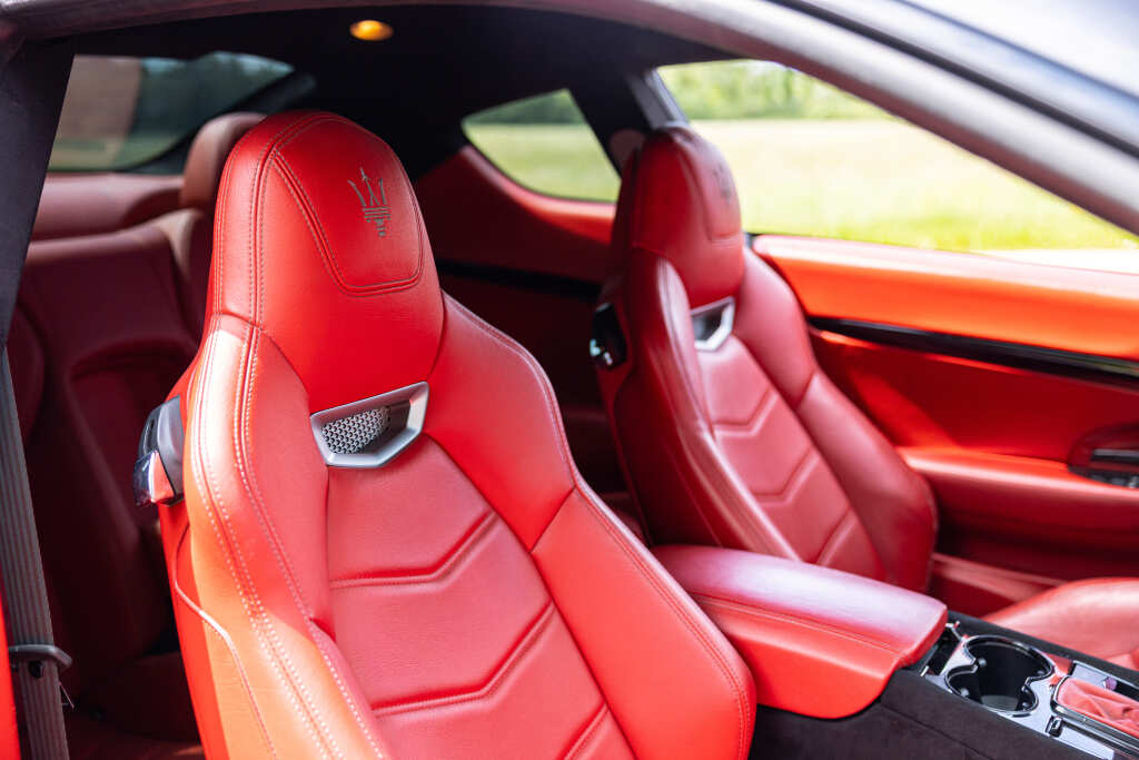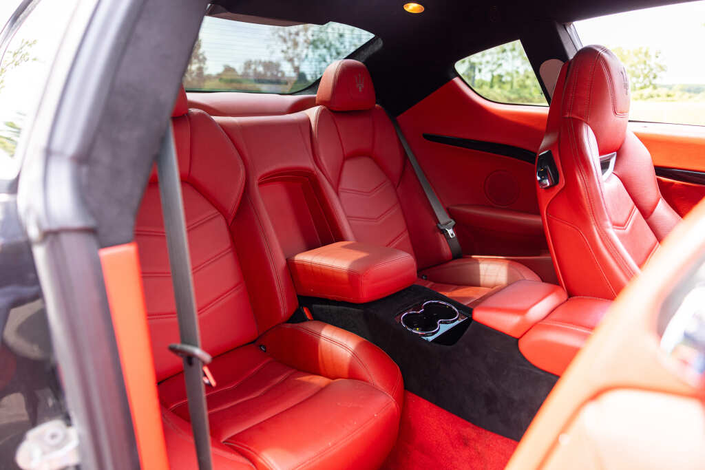 - Teinte Grigio Granito, jantes 20 pouces noires, feux fumés, intérieur tout cuir rouge