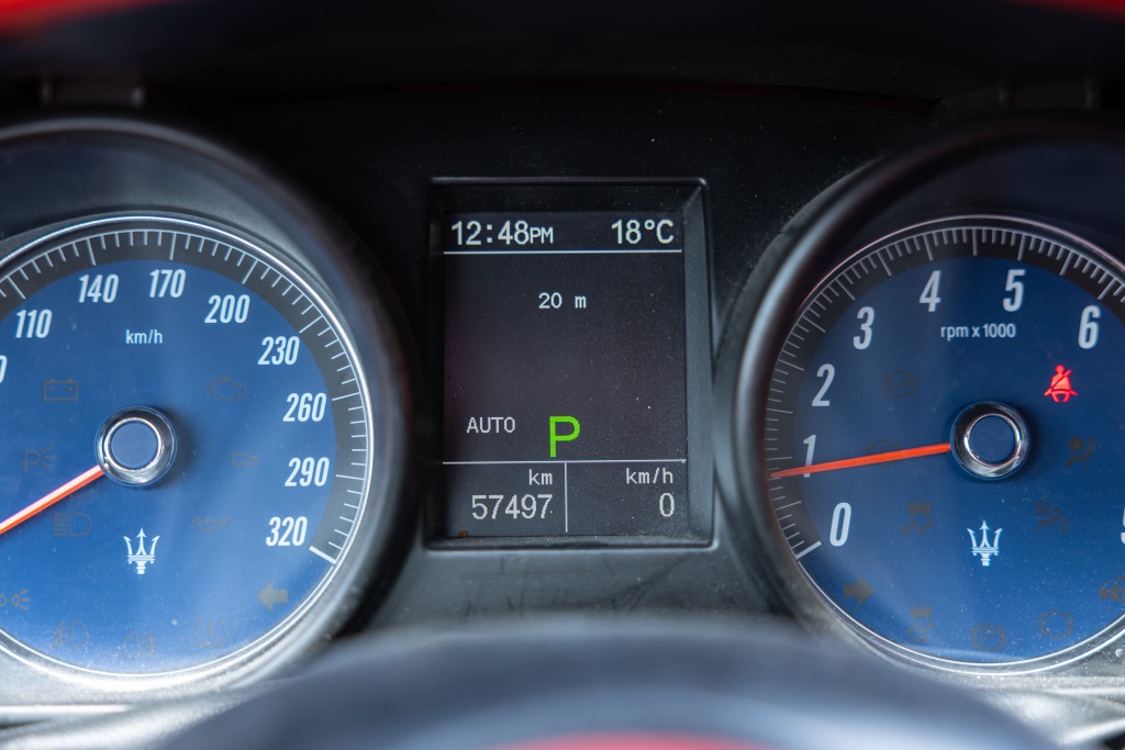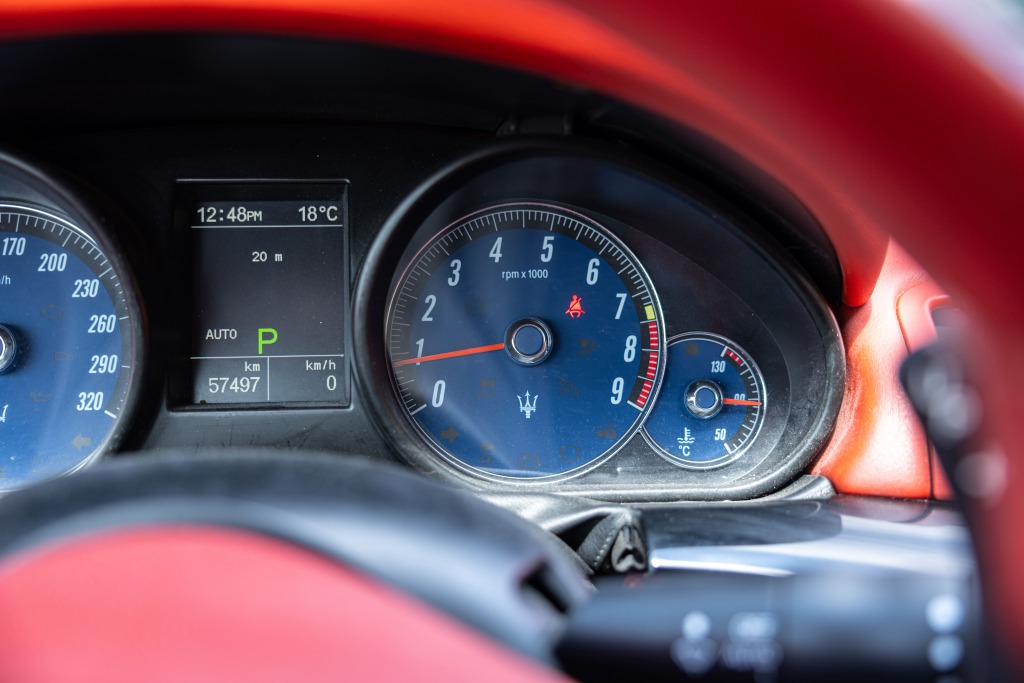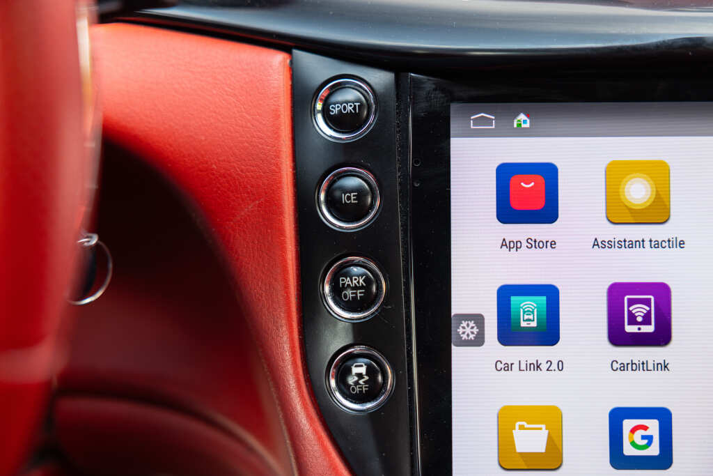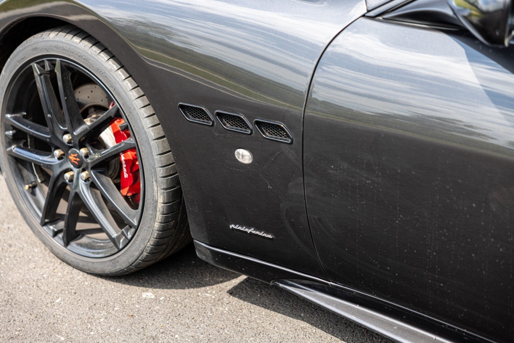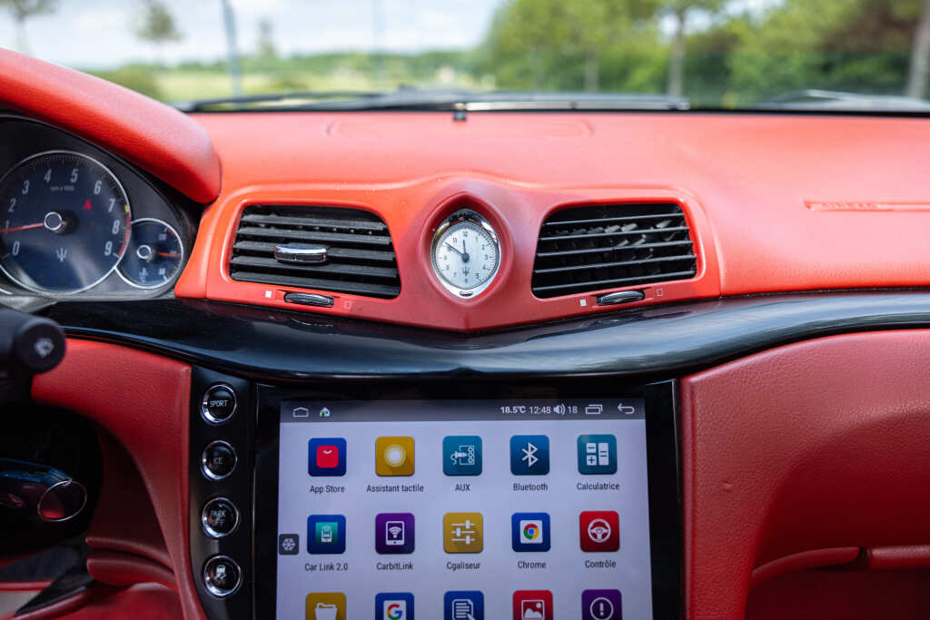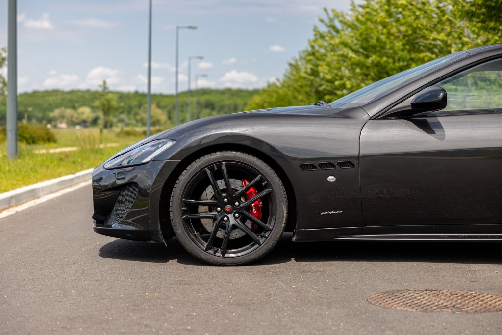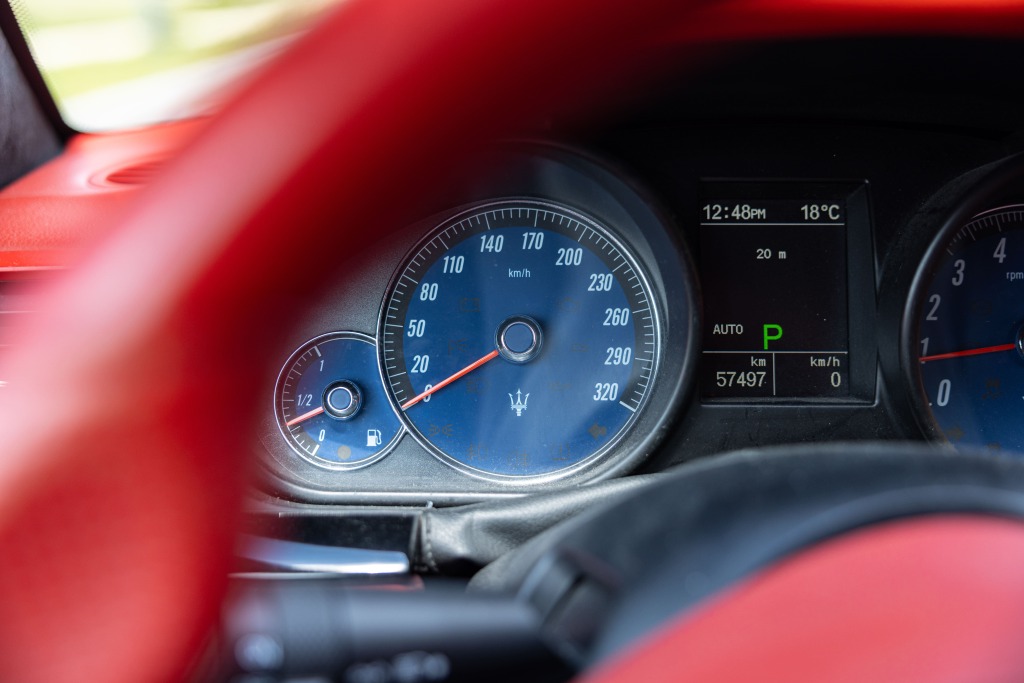 - Teinte Grigio Granito, jantes 20 pouces noires, feux fumés, intérieur tout cuir rouge