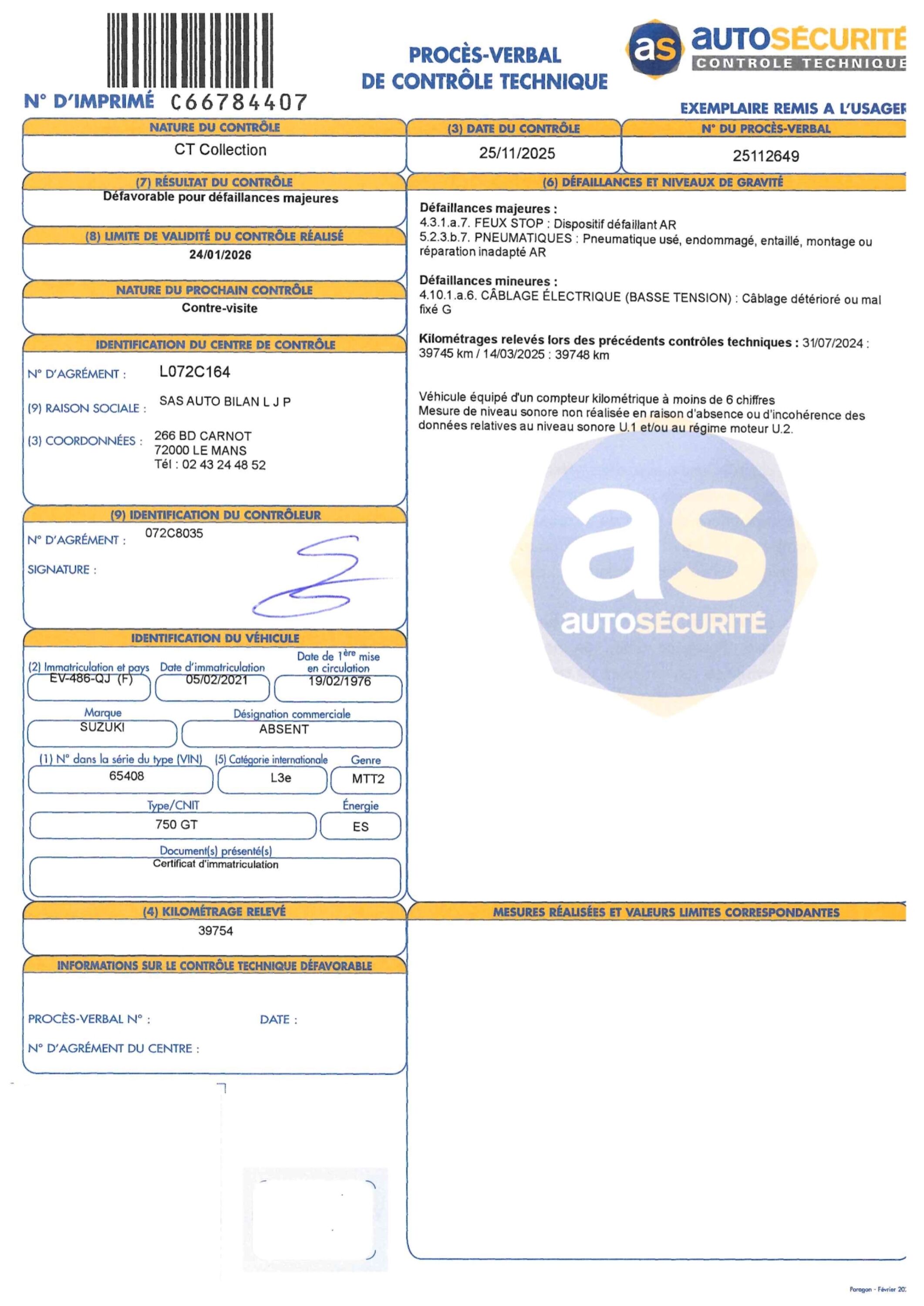 GT 750 - 1976, ROUGE, 7 cv, mise en circulation le 19/02/1976.